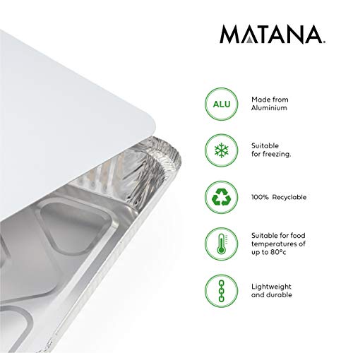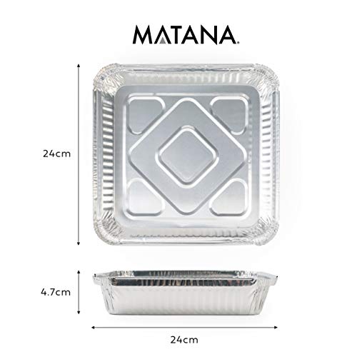 MATANA 25 Wegwerp Aluminium Bakjes met Deksel – 1500ml / 24x24cm – Sterk, Lekvrij & Praktisch – Koken, Bakken, Grillen, Invriezen