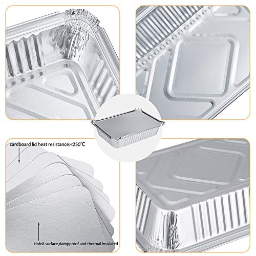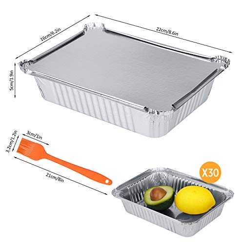 30 stuks aluminium bakplaten met deksels borstel, wegwerp barbecue lekbakjes folie bakvormen bakplaten plaat vierkant medium voedsel bewaren thuis afhaalmaaltijden opwarmen koken roosteren
