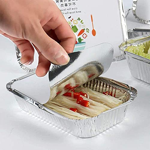⭐ Design met deksel: elke houder van aluminiumfolie is uitgerust met een deksel van aluminium en de bovenkant van de container van aluminiumfolie heeft een opvouwbare rand, die snel kan worden verzegeld om levensmiddelen vers te houden.
