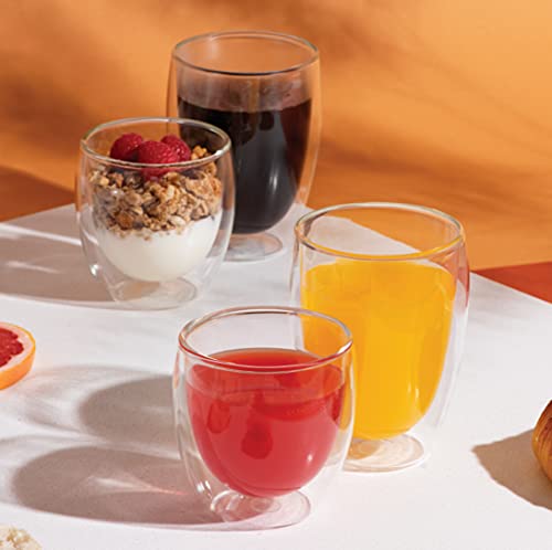 Van dubbelwandig borosilicaatglas voor betere isolatie: warme dranken blijven langer warm en koud langer koud.
