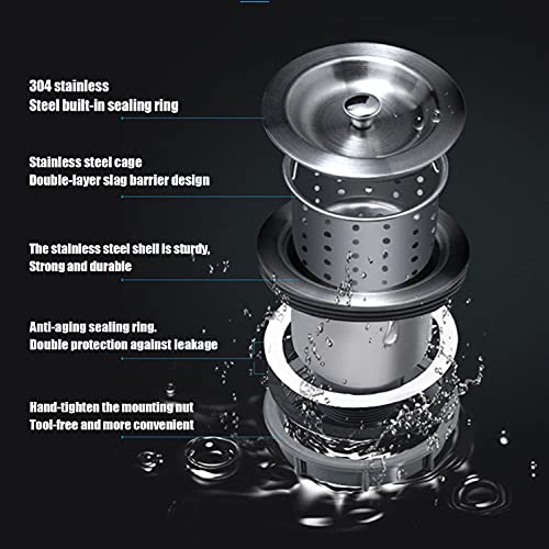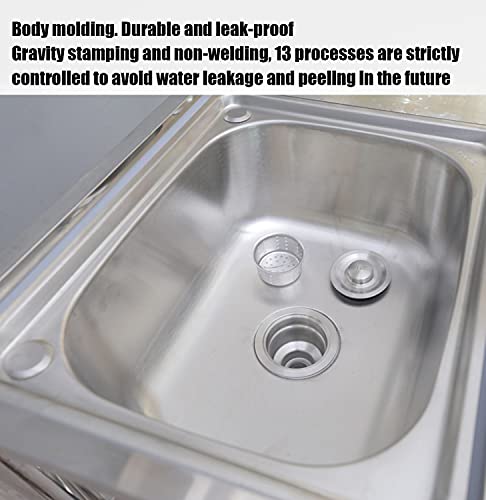 【Wastafel voor alle vereisten】: Dubbele planken kunnen reinigingsapparatuur en accessoires opslaan, twee riolering van roestvrijstalen drainage met twee afneembare filters kunnen voorkomen dat voedsel en puin de drainagepijp verstoppingen, en de versterkte tafel kan worden gebruikt voor het snijden van varkenskoteletten en steaks , etc., zwanenhals 360 graden rotatiekraan, kan warm en koud water produceren