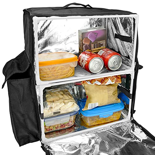 Thermische rugzak ontworpen om voedsel voor privégebruik of thuisbestellingen te vervoeren. Rugzak gemaakt van resistente zwarte stof, met reflectoren voor meer veiligheid bij weinig licht. Isothermisch gecoate rugzak die eten langer warm houdt. Ideaal voor thuisbezorgers van eten, die reizen met de fiets, motor, auto, elektrische scooter, etc. Ook geschikt voor excursies, picknicks, barbecues en andere buitenactiviteiten, omdat het voedsel in perfecte staat vervoerd kan worden.