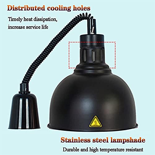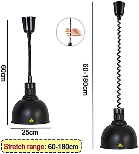 Breed warmtebehoudbereik: de lampenkap heeft een diameter van 25 cm, die kan voldoen aan de warmteconserveringsbehoeften van de meeste voedingsmiddelen, zonder dat u zich zorgen hoeft te maken over de grootte van de lampenkap. De spiraaldraad kan vrij worden uitgerekt en het rekbereik is 60-180 cm, wat aan uw verschillende behoeften kan voldoen. Suggestie: de lampenkap is 3-40 cm verwijderd van het voedsel, het effect is beter!