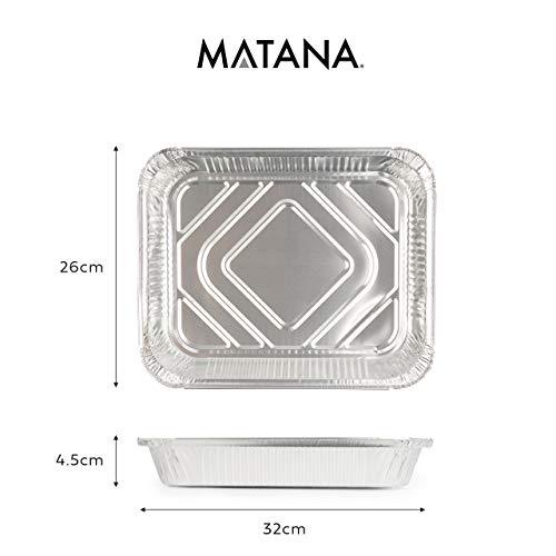 MATANA – 20 grote aluminiumfolie bakjes om voedsel in te braden, bakken met een gemakkelijk deksel, oven- en vriezerbestendig – 32 x 26 cm (2350 ml) – buffetbakjes met deksel