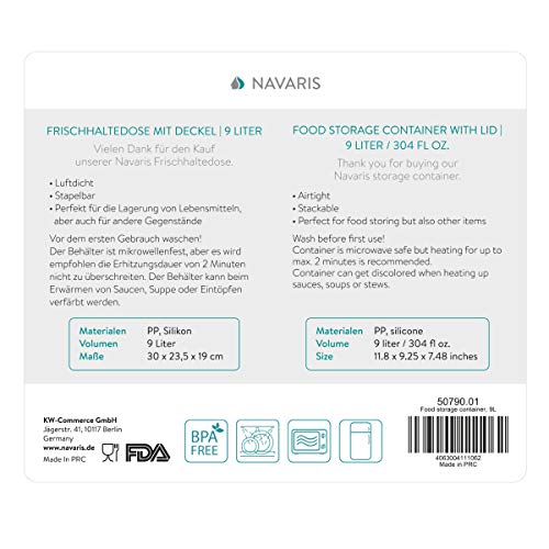 Navaris meal prep bakje – Vershoudbakje van kunststof – Vershouddoos met deksel – Inhoud 9 liter – Geschikt voor vriezer en magnetron