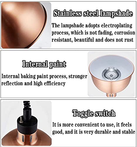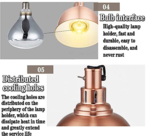 Voedselverwarmingseffect: de voedselwarmtelamp met infrarood verwarmingslamp (250 W), kan het vocht en de smaak van het voedsel behouden en droogt het oppervlak van het voedsel niet uit (zoals frites, barbecue, enz.). En de koelgaten zijn verdeeld rond de lamphouder, die de lampwarmte op tijd kan afvoeren en de levensduur van de lamp kan verlengen