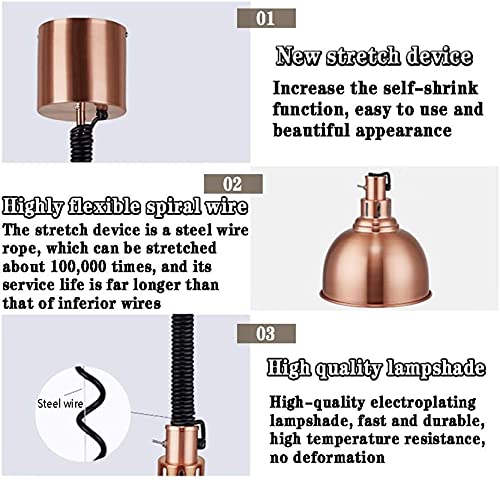 Uitstekende restaurantuitrusting: de voedselverwarmingslamp is een hulpmiddel dat wordt gebruikt voor het verwarmen van voedsel en het weergeven van voedselverlichting. Het kan voedsel en servies warm houden zonder dat u zich zorgen hoeft te maken over de snelle kou van lichte maaltijden en behoudt de oorspronkelijke smaak van het voedsel. Verstelbare hoogte (instelbereik: 70-190 cm) om aan uw verschillende vereisten te voldoen