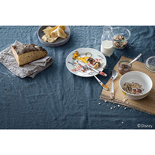De koning van de leeuwen overtuigt door een schattige dieren- en prachtige Afrikaanse steppenwereld. De leeuwenkonig Mufasa geeft de heerschap over aan zijn zoon Simba. De leeuwen en vele vrienden zijn wereldwijd bekend en al vele jaren bekend van bioscoop, muziek, televisie en vele ontwikkelde passende licentieproducten. Daarbij passen de ergonomische handgrepen van het kinderbestek perfect in de handen van kleine eters vanaf drie jaar. Daarbij is er een tweedelig kinderporselein bestaande uit bord en kom.